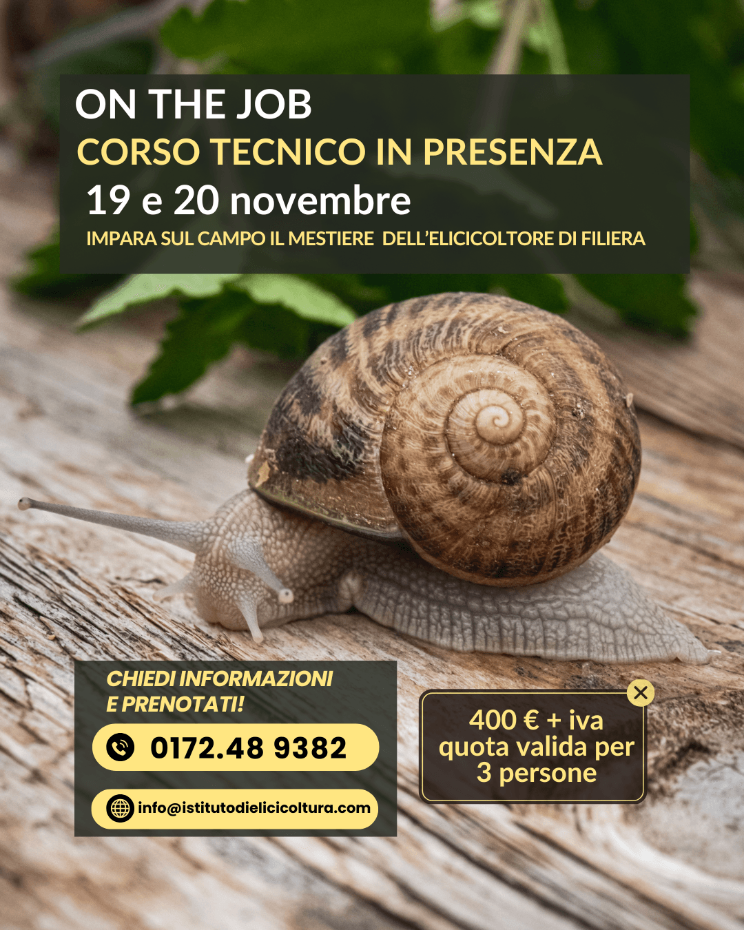 L'Istituto Internazionale di Elicicoltura, nel suo impegno continuo per fornire un supporto dettagliato agli associati ANE interessati a intraprendere il percorso dell'elicicoltura secondo il metodo naturale a ciclo breve, ha deciso di organizzare una serie di appuntamenti formativi.