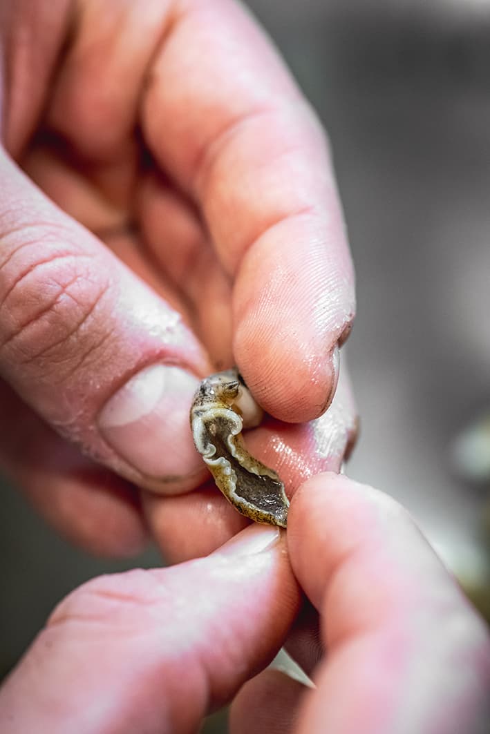 Chef Arduino dello Smoking Wine Bar - luogo eclettico e informale che si inserisce nella nuova verve gastronomica di Torino - valorizza questa materia esaltandone la sua naturale poliedricità con Chiocciole alla diavola - Chiocciole di Cherasco su un letto di polenta taragna con spinacini al burro, bagnetto verde e paprica affumicata - una rivisitazione verace di un piatto della tradizione italiana. “Scelgo le Chiocciole Metodo Cherasco perché raccontano un’idea di cucina etica, pulita che sta benissimo con la mia idea di cucina in cui l’ingrediente è ricercato, sì, di qualità, ma le ricette sono semplici, senza troppi fronzoli. La vera eleganza sta nella sincerità del gusto."