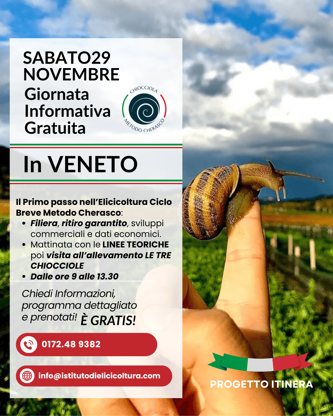 La partecipazione è gratuita, ma i posti sono limitati!Prenota subito il tuo posto e inizia il tuo percorso nel mondo dell’Elicicoltura.