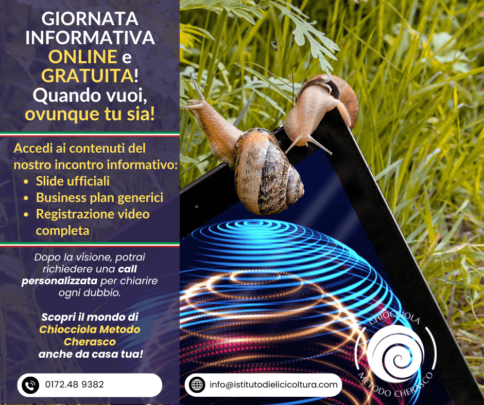 Accedi gratuitamente ai contenuti completi del nostro incontro informativo, pensato per chi desidera avvicinarsi all’elicicoltura in modo chiaro e professionale: